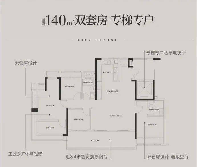 【建面约140㎡ 四室两厅三卫 双套房专梯专户】