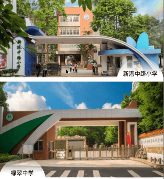 小学:新港中路小学(距项目180米,直升绿翠中学)、客村小学(距项目1.3公里)