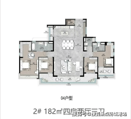顶级奢享之选当属182㎡四房,拥有270°环幕视野,客厅开间恢弘大气,主卧配备双台盆卫浴系统。精装交付标准严选国际一线品牌,如大金中央空调、杜拉维特卫浴等,真正实现“拎包入住”的尊崇体验。