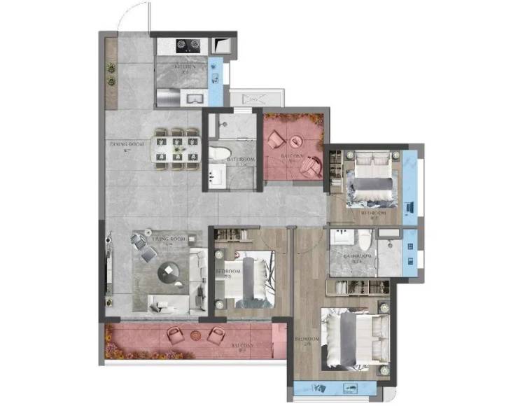 另外,相比于市面上同面积段的三房,该户型还多出一个多功能空间,可作为书房、儿童房、化妆间等使用。