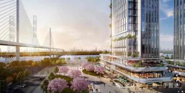 项目距离珠江极为亲密,直线距离不到100米,业主一推窗,就是江天一色的美景。为了让江景视野更大化,项目做了约6米高的架空层,再加上整个项目原有的约8米地基抬高,和江面形成了约14米的落差。站在3栋的2楼,都能欣赏到几乎无遮挡的珠江美景。前低后高的楼栋布局,无限拉近了业主与珠江、与滨江公园的距离。