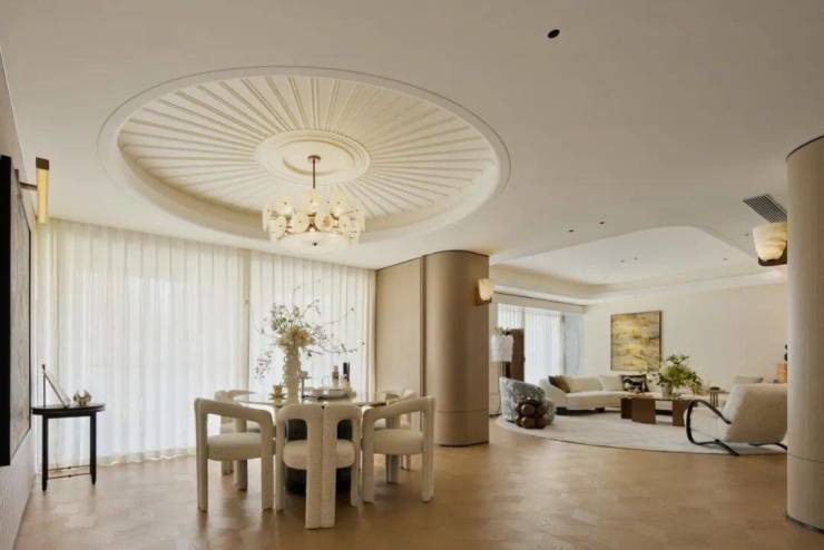 如254㎡户型,大尺度规划三房,将居住舒适度提升至全新境界。11米的客餐厅开间,配合逾60㎡的阔绰公共区域,无论是举办20人的私密晚宴,还是小型的雪茄品鉴会,或是家族聚会,都能从容应对,尽显大家风范。大空间意味着更高的生活自由度。主卧面积突破40㎡,规格甚至超越五星级酒店。这不仅给人带来视觉上的震撼体验,更让日常起居的每个细节都流淌着从容气度。