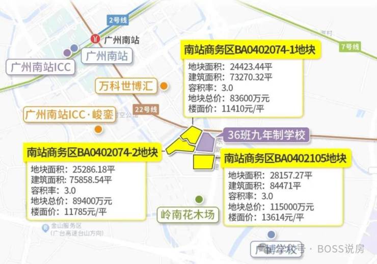 项目 074-1 地块配建 36 班九年制学校,074-2 地块配建 9 班幼儿园,周边还有广州博萃德学校,涵盖了从幼儿教育到九年义务教育以及国际教育等不同类型的教育资源。