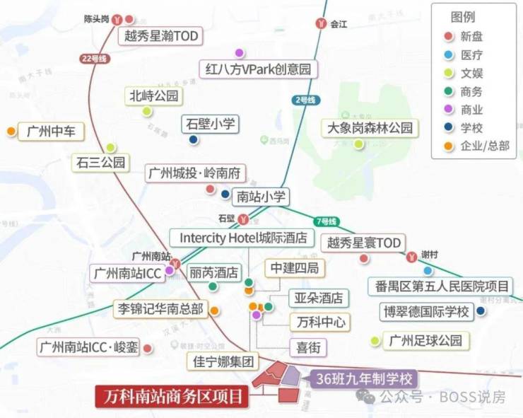 商场:北临新鸿基 ICC(建设中)、南站花城汇(待开放)、南站喜街(已经开业)等商圈,还能乘坐地铁去往万博的天河城、K11、华润万象系商业等,此外,小区附近约 2.5 公里处还有雄峰城。