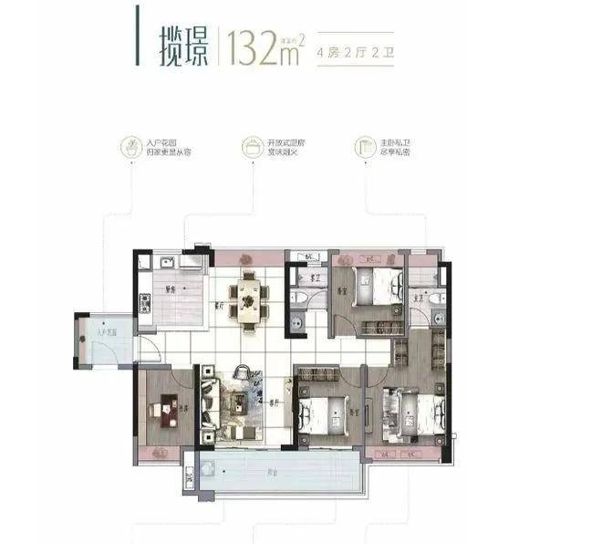 保利翔龙天汇主推多种经典竖厅设计户型,实现了动静分离,活动区与休息区互不干扰。创新LDK一体化设计,使得空间更加通透,空气流动更通畅,阳光充足。如建面约122平方米的户型,除了卧室空间和独立卫浴外,还拥有阳台空间,白天可以是女主人的惬意下午茶时光,晚上则是夫妻俩浪漫的小酌时刻。