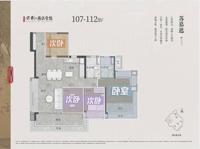 107-112平苏幕遮,这个户型是东南向,有利有弊。