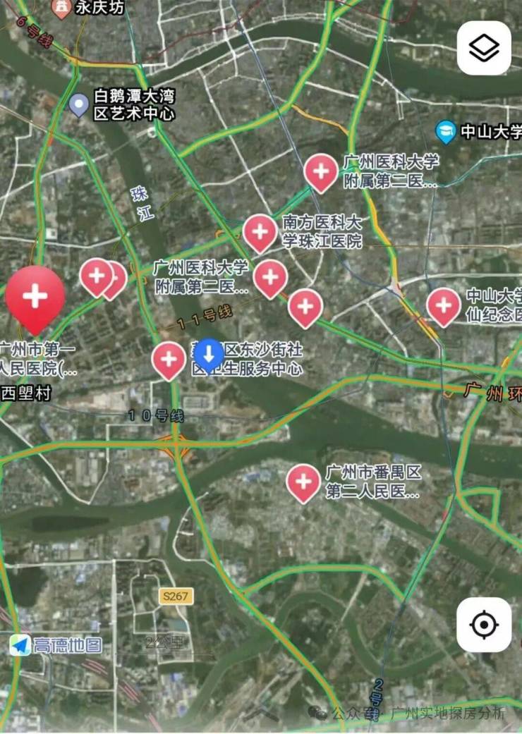 项目距离地铁10号线东沙站大概700米,预计25年年底开通,1站就到对岸海珠西4站中大,6站滨江东,零换乘直达珠江新城。1.3公里是已开通的地铁11号线环线。