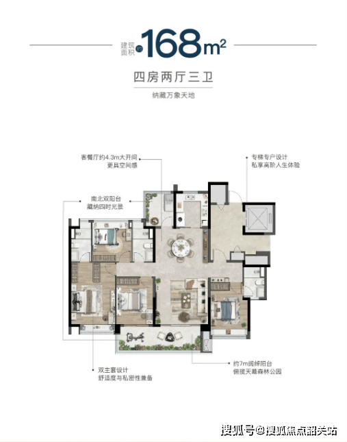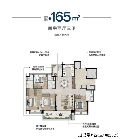 建面约160-168平方米五房两厅三卫:大面积户型,适合大家庭居住,拥有更多的私人空间和活动区域。