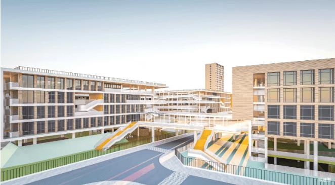 园林不再是平面单一的,约1.3万㎡中央园林,形成一轴两环五核心的景观节点,与金山湖的自然生态遥相呼应。更立体,与归家、观景、运动等等场景“嵌套”。