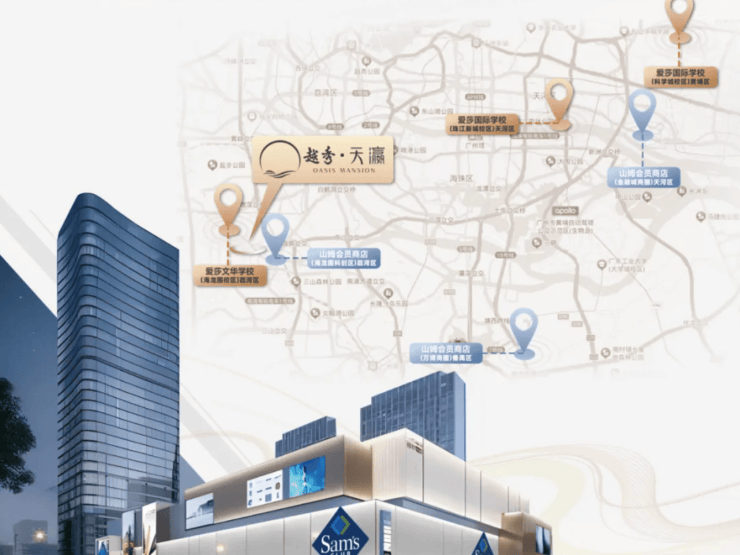 处于太古里 6KM 地标圈,周边有全国第四座太古里、第三座太古汇(建设中),万象城、“三馆合一”、爱莎国际学校、广州第三座山姆会员商店(建设中)等高端配套环伺,未来繁华可期。