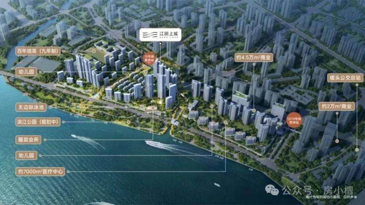 退台式布局确保80%楼栋南向望江,2楼也能无遮挡瞰江。项目还打造主题会所,包括约2000㎡江景会所、270度私宴厅、江幕无边际泳池等设施。