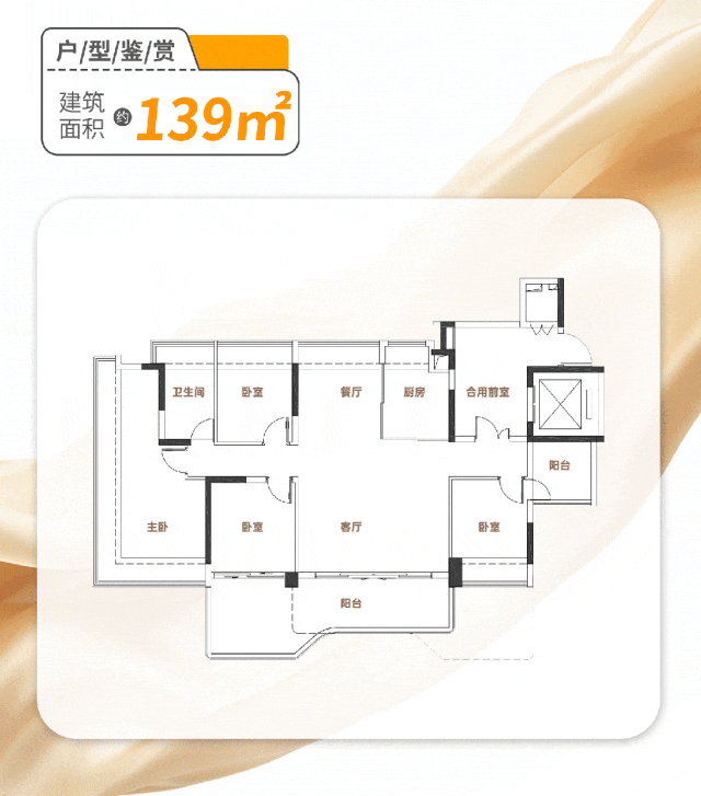 环幕江景高层主推建面约139-200㎡户型,其中139㎡四房两卫为T2板楼设计,私属梯厅入户,使用率127-129%。200㎡大平层拥有270°环幕视野,错层通高约5.4米阳台。