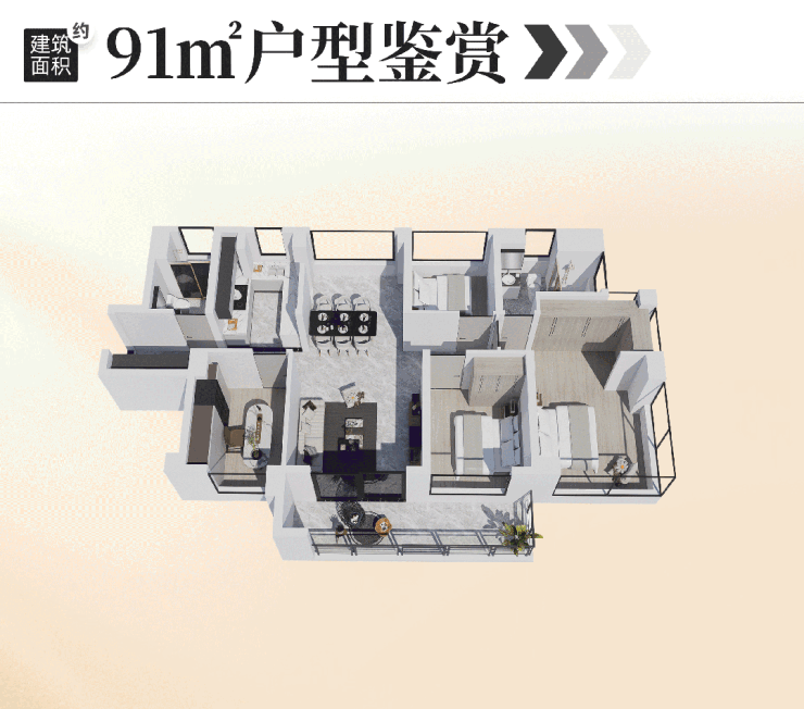 建面约79㎡户型,更是突破了小户型南向采光的想象。