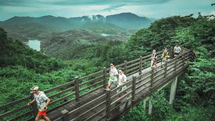 盘错在山林绿地的环湖栈道,一共有近百条线路,最长可达34公里,被誉为广州的“徒步天堂”。一年四季常绿的植被,时时刻刻都充满生机。