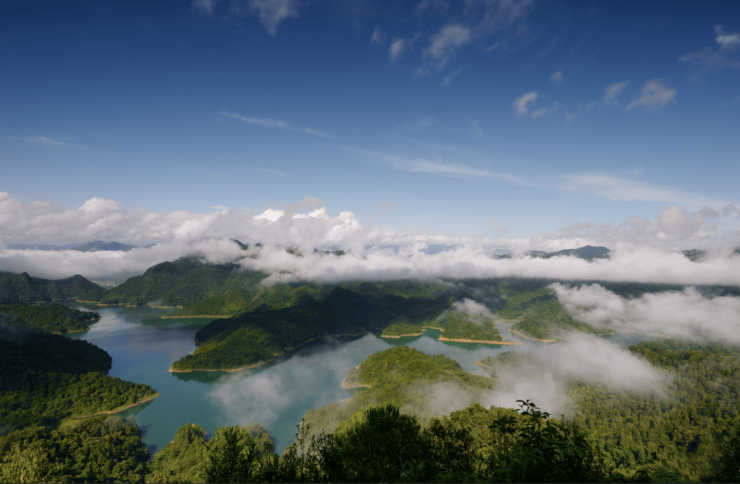 2万余亩山林,秀美而葱郁,4500余亩水域,水深而清冽。九龙湖小镇三面被群山环绕,气候温和,阳光充足,山中万物生生不息。野生动物种类达二百余种,植物种类数千种。