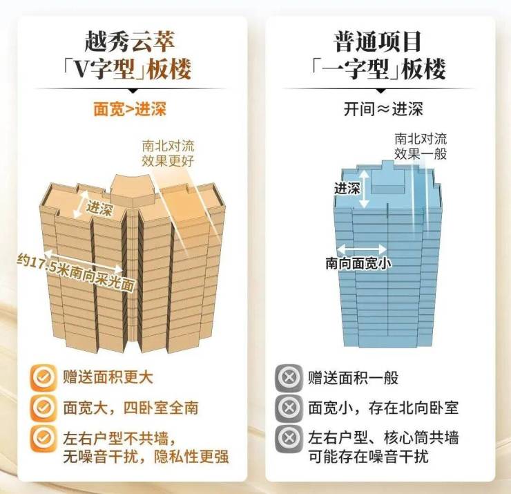 云萃的独创的「V字型」板楼,真正做到了开间>进深。有什么好处呢?