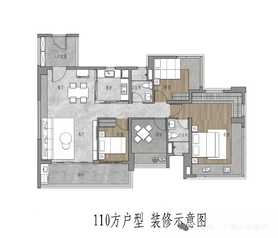下面是110平户型,约6.7m超长景观阳台,四季阳光为伴,直面诗意园林景观,自然风光尽收眼底,约3.9米开间主卧,超30方豪华主套,礼遇品质生活