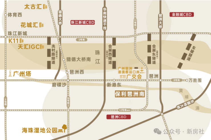 项目距离广州地铁8号线和11号线的琶洲站仅900,步行即可到达。周边还有新滘东路、科韵南路、环城高速和南沙港快速等交通干,出行十分便捷。