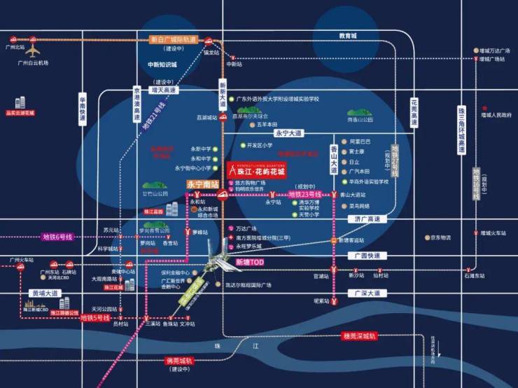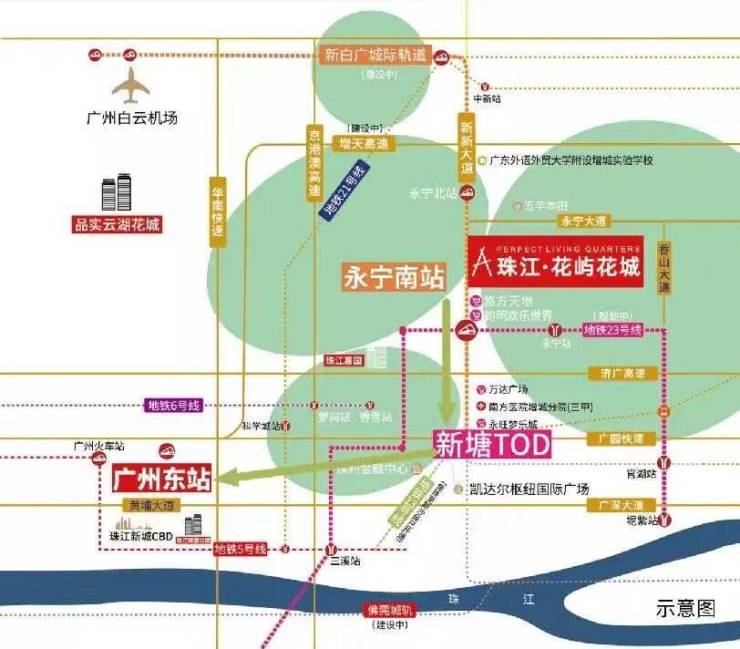 项目步行约900米即达新白广城轨(在建中)/地铁23号线(规划中)永宁南站,据官方报道,新白广城轨将于12月底投入试运营。届时,花屿花城业主在家门口上车,1站即可达新塘TOD、3站到天河北,更能在30分钟内畅达珠江新城,悦享都市繁华生活圈。