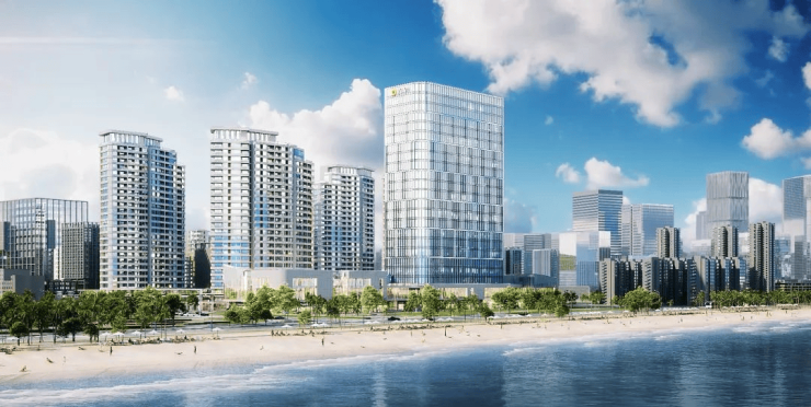 紫金国际中心咫尺三亚湾海岸线,向海而生的时代商务场所,一面是迷人的热带滨海风光,一面是繁华喧嚣的城市景致,开阔的不止视界,更是企业发展的境界。
