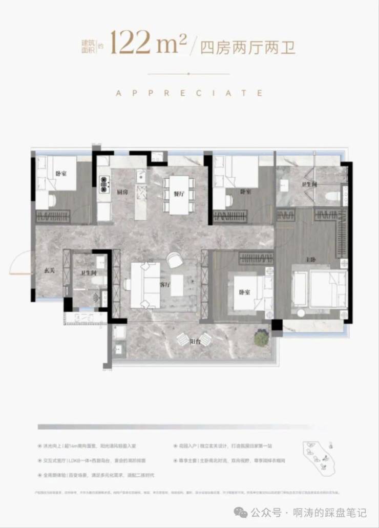 ✅真跃级:约3.75m开间主套,步入式衣帽间+270°景观飘窗+三分离卫浴;