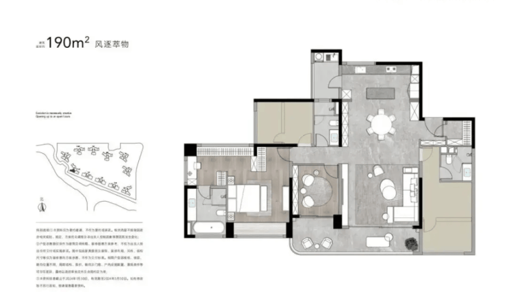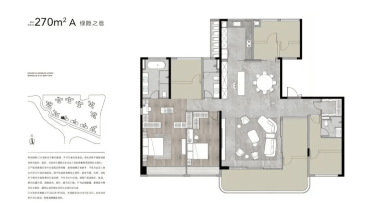 270㎡的 4 室 3 厅 2 卫则是大户型选项,空间尺度开阔