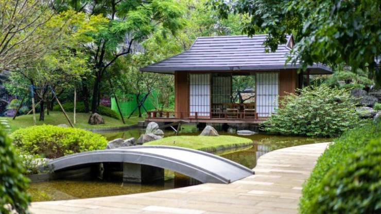 小区园林“四谷三庭”的空间布局,不像传统豪宅园林那样“扁平”,而是非常立体。在这里,项目借助砂、石、水、木等元素,营造山水庭院的禅意。搭配上樱花树等各种花期不同的树木,也算是把“四季”风景搬到小区楼下。