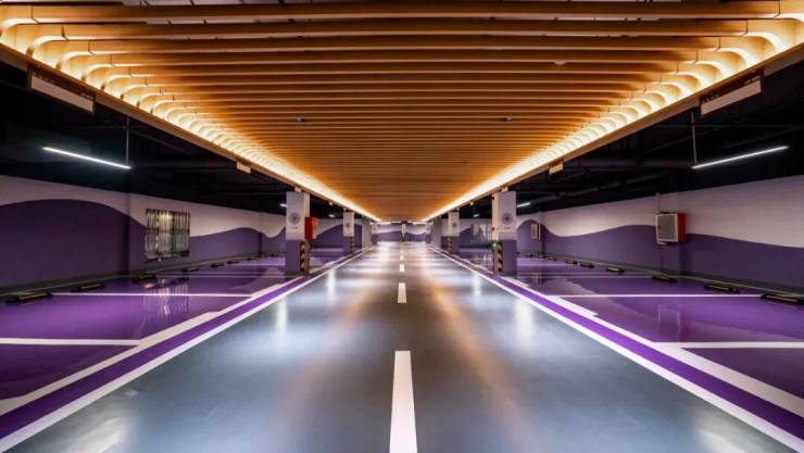 再比如,业主最容易忽略的车库,也能看出臻颐府一系列精心打磨的细节,天花板采用木纹铝板格栅吊顶,更显轻盈、透气。