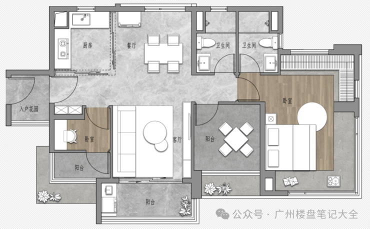 ·超高户型使用率,市场罕见迭代产品·四开间朝南,约12米南向连续大采光·约27㎡超配主套,三面采光飘窗舒适度UP·带入户花园,私密性强,精致改善标配
