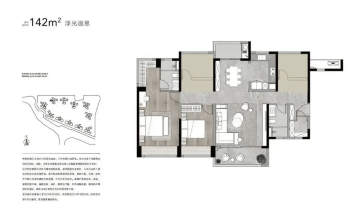 142㎡4室2厅2卫是销冠户型,分布在东区3栋,设计合理,能满足二胎家庭的居住需求。