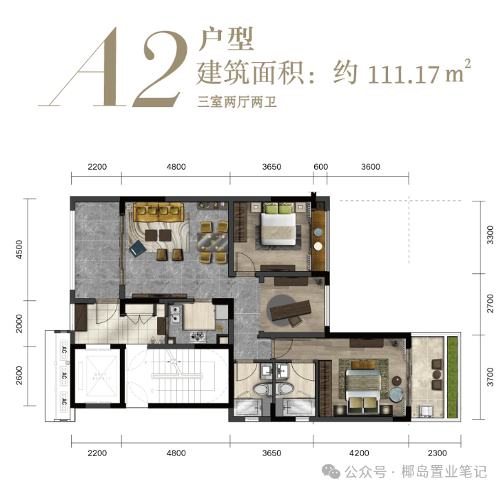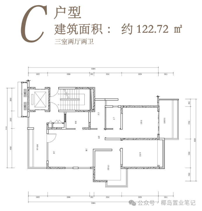 主力户型:98㎡两房,111㎡三房,122㎡三房