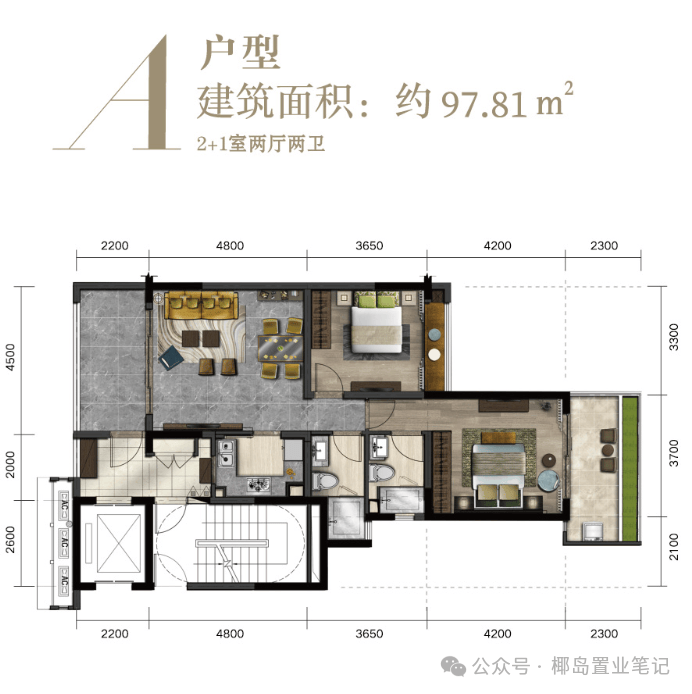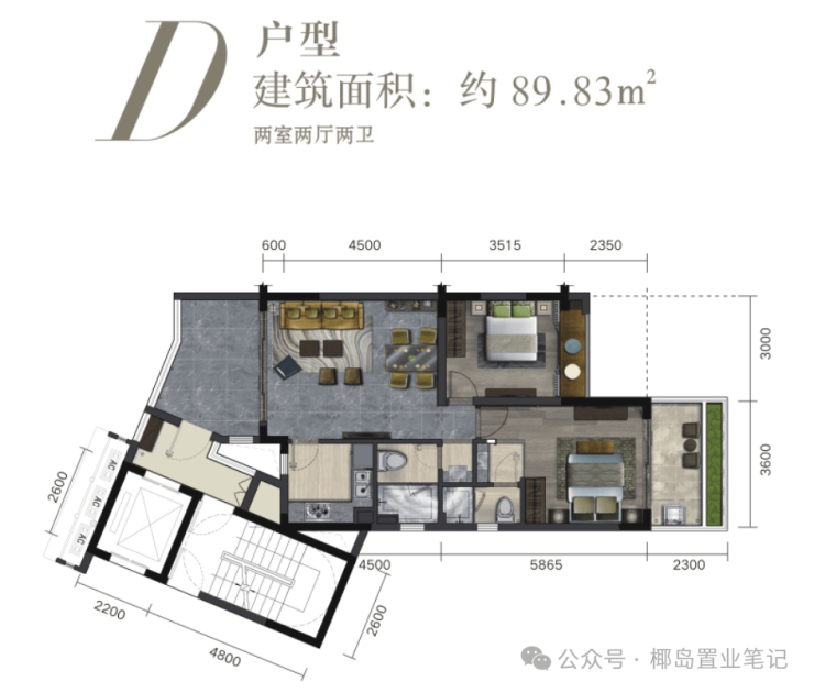 主力户型:89㎡两房、98㎡两房、110㎡三房