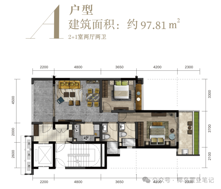 主力户型:80㎡两房、97㎡两房、110㎡三房、122㎡大三房