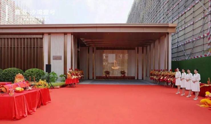 当前,超大尺度的岭南美学门庭已实景呈现,对标高奢酒店式设计。