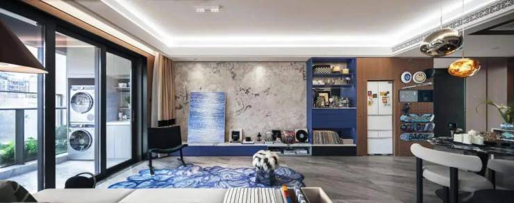 该户型同样采用LDKB一体化设计,真南北通透,4.5米开间朝南,餐厨空间摒弃传统实心墙,使用率高达约100%。