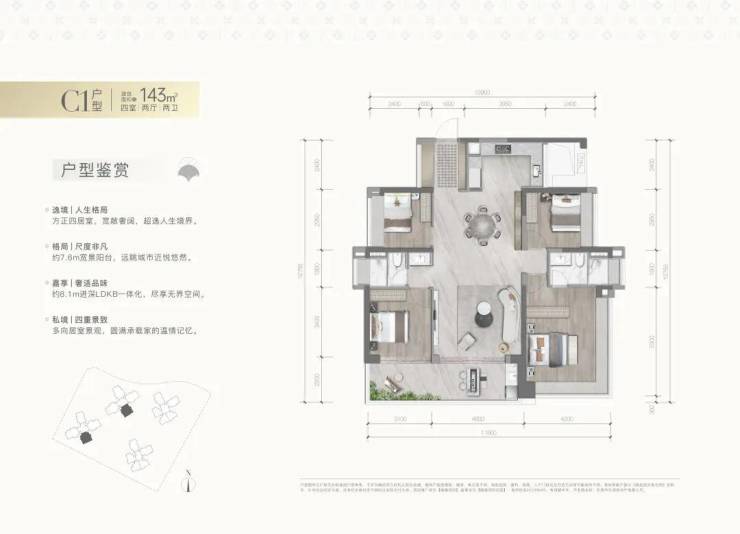 望云——建面约143㎡的四房