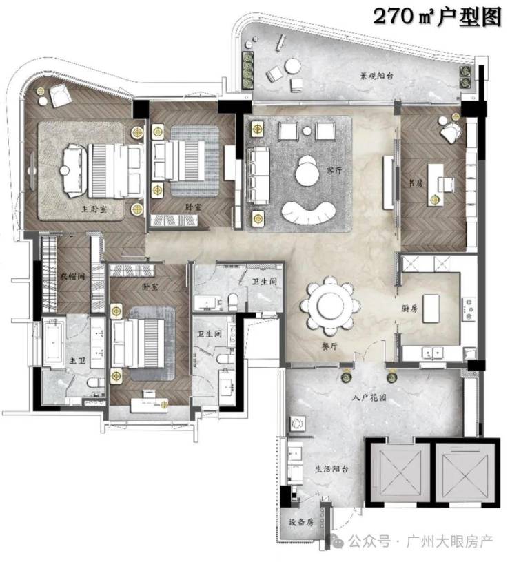 ⑥星级主卧套房,配备衣帽间及四分离卫生间