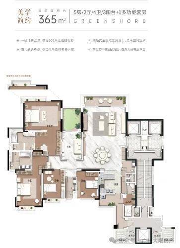 【A户型】王牌户型 270㎡环幕江景四房,约9米超大邮轮式阳台,一线望江无遮挡,专梯专户,墅级空中双花园,约28㎡超大私家庭院,多功能空间,约42㎡超大主卧空间,270°环幕江景,阔绰双主套房设计