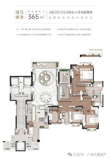 ●中轴城市江景叠墅:广州中轴之上南向一线望江叠墅,占据广州第二个中轴岛的地段资源及不可复制的自然景观资源。
