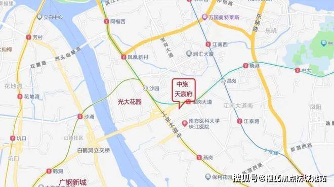 中旅天宸府位于海珠区昌岗中路与宝岗大道交汇处,地处海珠西传统三大黄金走廊(宝岗大道、工业大道、江南大道)的核心交汇带,属典型的老城区成熟板块。该区域虽无大规模城市更新预期,却以高度成熟的公共服务体系与浓郁的生活烟火气,成为广州主城不可复制的宜居高地。