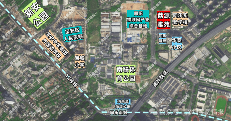 从大区位来看,荔源雅苑位居宝安区跟南山区交界处,西侧是宝安中心区,北侧是南山TCL科学园国际E城,东侧是西丽交通枢纽,深圳超级总部基地,南侧是南山中心区。