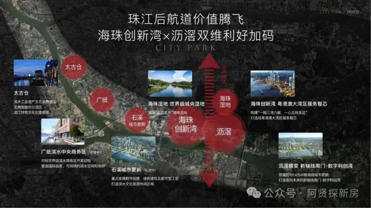海珠创新湾将构建成展示珠江城市品牌、承启广州文化基因、集聚现代化科创要素的新城市轴线核心门户;沥滘百万方城市更新,打造未来南延线新中轴。