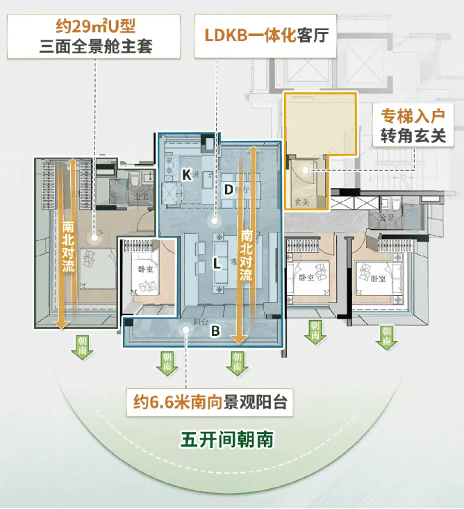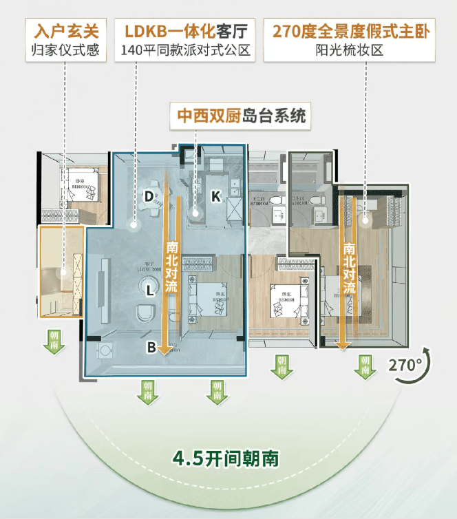 ✅南北通透,LDKB式设计