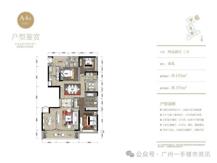 这次推出的住宅主要为A4栋大面积户型,主要户型为188㎡和193㎡南向现楼四房,基本都是20楼以上的高层单位,目前仅剩下最后一套顶楼188㎡大平层四房户型,单价5.4万左右/㎡毛坯现楼出售,对比现在二手相同户型在售的7.5-9万/㎡,这套188㎡现楼单位的性价比非常高。