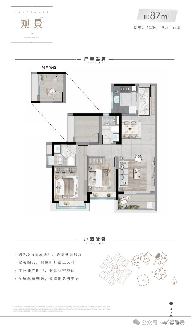 性价比之王,带主套-87㎡三房两卫