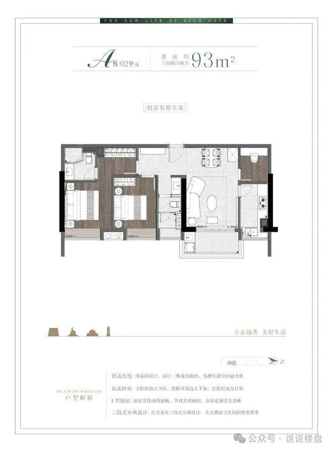 A栋02单元93㎡户型: