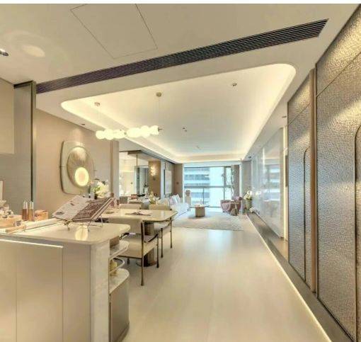 值得一提的是,项目整体采用“准四代住宅”理念打造——不仅注重建筑美学,更强调健康、智能、生态与社交空间的融合。比如小区地势整体抬高,有效防潮防涝;园林设计融入水景、绿植与休憩节点,营造出沉浸式的归家动线;地下车库也做了精装处理,局部区域甚至打造了“星空顶”效果,仪式感拉满。