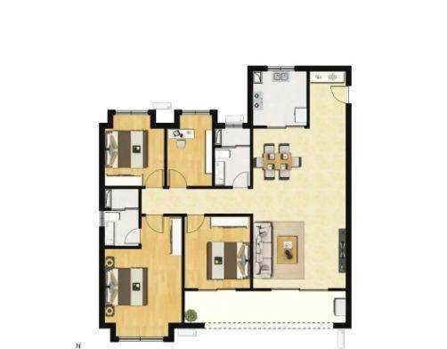 建面约124㎡边户四房:南北通透,格局方正,动静分区明确。北侧次卧可根据家庭需求灵活改造——可打通做超大主卧套房,也可保留为儿童房或书房。飘窗设计预留优化空间,进一步提升使用效率。无论是二胎家庭还是三代同堂,都能在这里找到舒适的生活节奏。