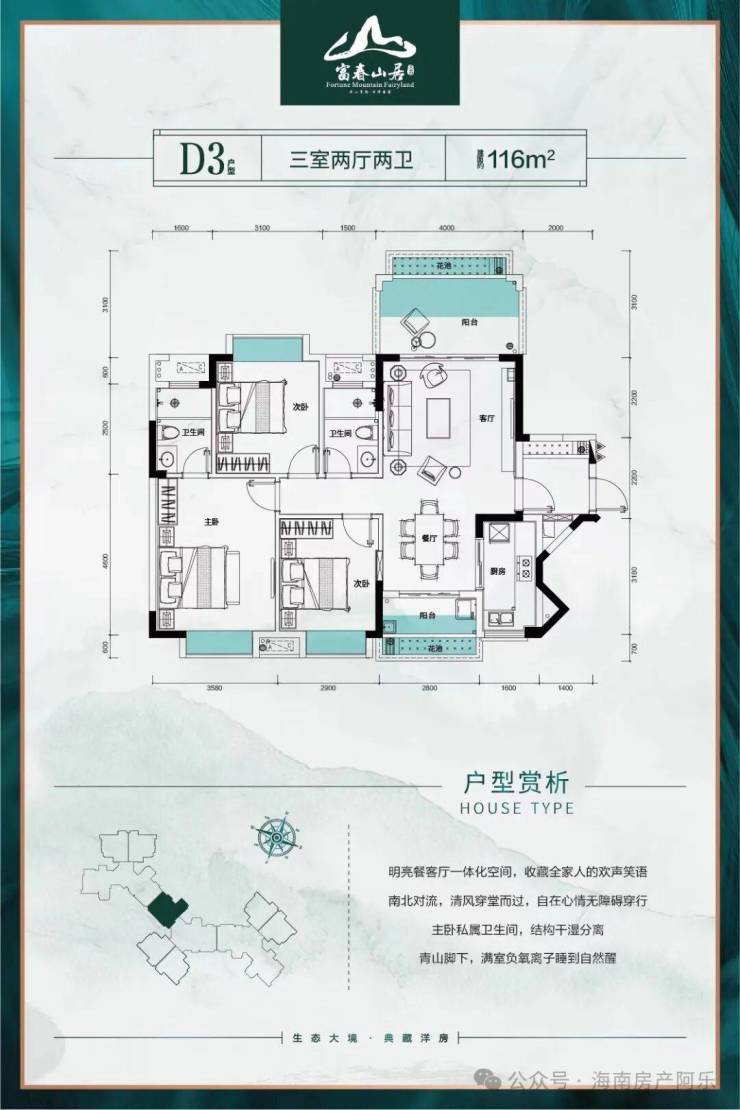 建面约105-116 m² 南北通透三房