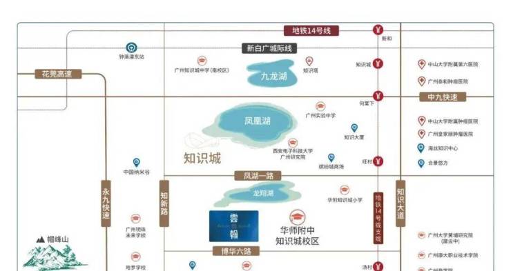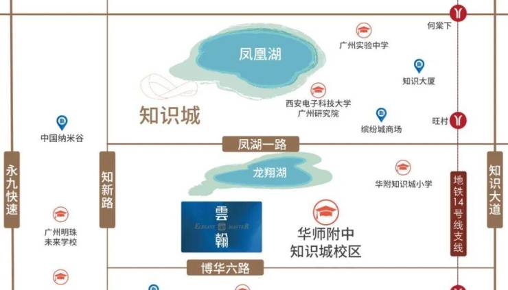 项目周边华附知识城小学、广东外语外贸大学知识城实验小学、凤凰湖小学、广州实验中学&广实小学、新侨中学、广州市二中会元学校等中小学优质教育资源集结,涵养书香名门。